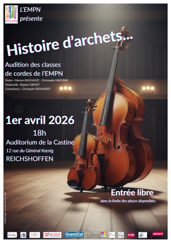 | Mer. 1er avril, 18:00 | Histoire d’archets... | Auditorium de La Castine - Reichshoffen |