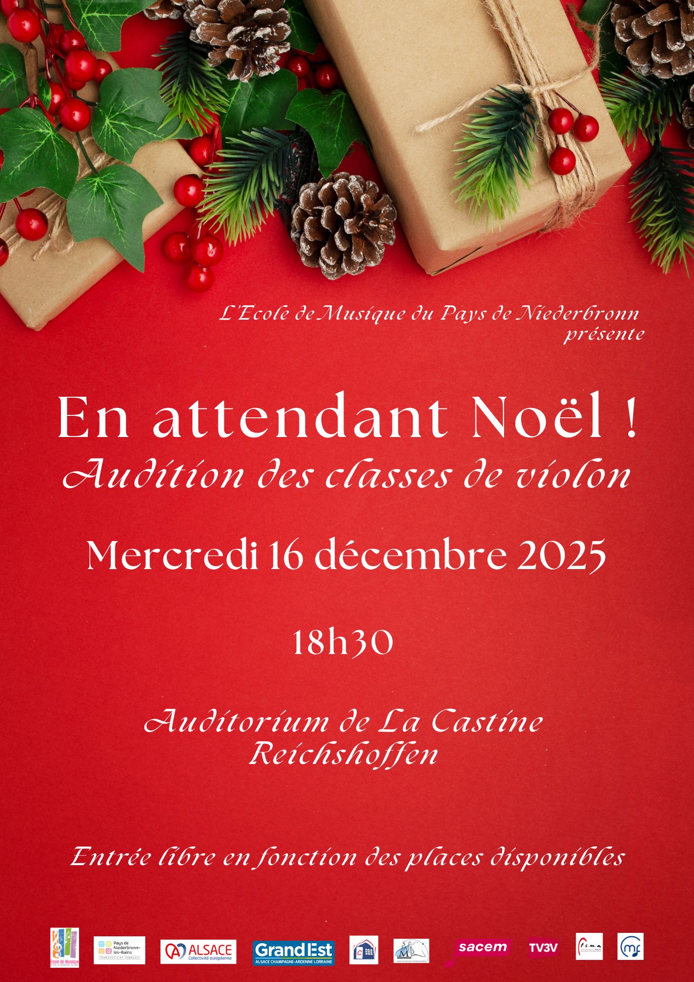 | Mar. 16 décembre, 18:30 | Audition de Noël des classes de violon | Auditorium de La Castine - Reichshoffen |