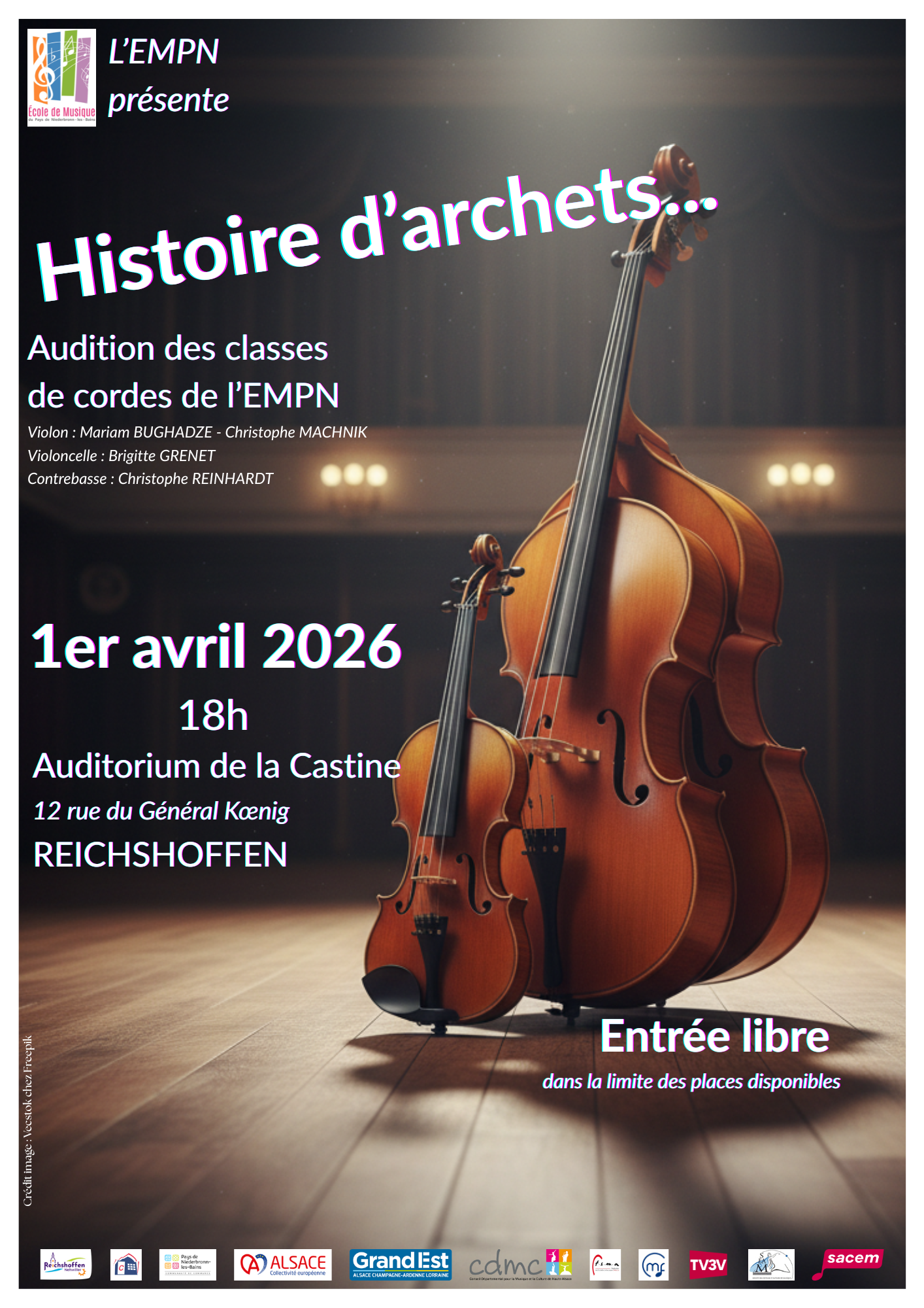 | Mer. 1er avril, 18:00 | Histoire d’archets... | Auditorium de La Castine - Reichshoffen |